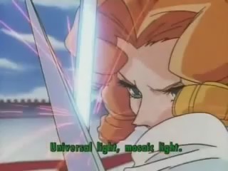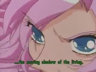 この猛攻の合間に、アンシーと、樹璃方過去の3人の一枚絵がインサートされるけど、3人の一枚絵のカットは、樹璃の左への運動方向にあわせてかなり高速で左へPANされる。そのすぐ次のカットで、髪の毛以外動かしてないセルをスライドのみで交差させ、効果音と撮影のみによって剣の交差と位置の交代を見せる。やはり位置の交代カットは毎回印象的にしてある。