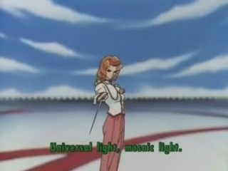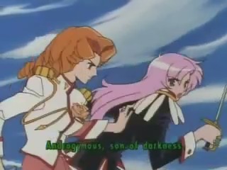 ここで勝負あり、かとおもいきや、枝織の顔やセリフがインサートされ、樹璃は、決して起きない奇跡の力を糧に、なんとウテナのディオスの剣を上へ弾き飛ばす。